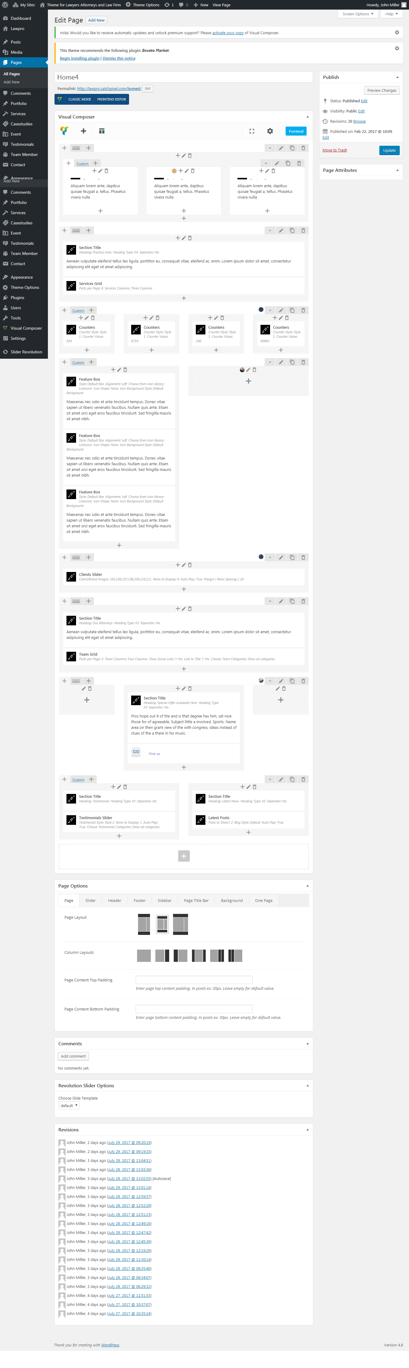 [vc_row full_width="stretch_row_content_no_spaces" el_id="section-top" css=".vc_custom_1488362646724{padding-top: 0px !important;padding-bottom: 0px !important;}"][vc_column][rev_slider_vc alias="rev_slider_6"][/vc_column][/vc_row][vc_row center_row="yes" css=".vc_custom_1488361763746{padding-bottom: 70px !important;}" el_id="section-about"][vc_column][zozo_vc_section_title title="Welcome" title_type="h3" title_transform="uppercase" title_weight=""]Aenean vulputate eleifend tellus leo ligula, porttitor eu, consequat vitae, eleifend ac, enim. Lorem ipsum dolor sit amet, consectetur adipiscing elit eget sit amet adipiscing.[/zozo_vc_section_title][vc_row_inner][vc_column_inner offset="vc_col-lg-4 vc_col-md-4"][zozo_vc_feature_box type="lineicons" icon_lineicons="simple-icon icon-support" icon_size="large" icon_hover_style="icon-hv-color" title="Request An Attorney" title_type="h4" separator="no" show_button="yes" button_url="url:%23|||" button_text="LEARN MORE"]Aliquam lorem ante, dapibus quisae feugiat a, tellus. Phaselus vivera nulla metus varius laoret quisque etum quisae feugit sem quam semper libero.[/zozo_vc_feature_box][/vc_column_inner][vc_column_inner offset="vc_col-lg-4 vc_col-md-4"][zozo_vc_feature_box type="lineicons" icon_lineicons="simple-icon icon-book-open" icon_size="large" icon_hover_style="icon-hv-color" title="Our Mission & History" title_type="h4" separator="no" show_button="yes" button_url="url:%23|||" button_text="LEARN MORE"]Aliquam lorem ante, dapibus quisae feugiat a, tellus. Phaselus vivera nulla metus varius laoret quisque etum quisae feugit sem quam semper libero.[/zozo_vc_feature_box][/vc_column_inner][vc_column_inner offset="vc_col-lg-4 vc_col-md-4"][zozo_vc_feature_box type="lineicons" icon_lineicons="simple-icon icon-globe-alt" icon_size="large" icon_hover_style="icon-hv-color" title="Our Service & Valuation" title_type="h4" separator="no" show_button="yes" button_url="url:%23|||" button_text="LEARN MORE"]Aliquam lorem ante, dapibus quisae feugiat a, tellus. Phaselus vivera nulla metus varius laoret quisque etum quisae feugit sem quam semper libero.[/zozo_vc_feature_box][/vc_column_inner][/vc_row_inner][/vc_column][/vc_row][vc_row bg_style="grey-wrapper" center_row="yes" typo_style="light" css=".vc_custom_1501153808148{padding-bottom: 55px !important;background-image: url(http://lawpro.catchpixel.com/wp-content/uploads/sites/11/2017/02/lawyer-bg3-3.jpg?id=1225) !important;background-position: center !important;background-repeat: no-repeat !important;background-size: cover !important;}"][vc_column width="1/2" offset="vc_col-lg-3 vc_col-md-3"][zozo_vc_counters counter_style="style-1" counter_value="934" counter_title="Clients we have"][/vc_column][vc_column width="1/2" offset="vc_col-lg-3 vc_col-md-3"][zozo_vc_counters counter_style="style-1" counter_value="6754" counter_title="Case we won"][/vc_column][vc_column width="1/2" offset="vc_col-lg-3 vc_col-md-3"][zozo_vc_counters counter_style="style-1" counter_value="240" counter_title="Awards so far"][/vc_column][vc_column width="1/2" offset="vc_col-lg-3 vc_col-md-3"][zozo_vc_counters counter_style="style-1" counter_value="40903" counter_title="Dollars we saved"][/vc_column][/vc_row][vc_row center_row="yes" css=".vc_custom_1488361780587{padding-bottom: 55px !important;}" el_id="section-practicearea"][vc_column][vc_row_inner][vc_column_inner][zozo_vc_section_title title="Practice Area" title_type="h4" title_transform="uppercase" title_weight=""]Aenean vulputate eleifend tellus leo ligula, porttitor eu, consequat vitae, eleifend ac, enim. Lorem ipsum dolor sit amet, consectetur adipiscing elit eget sit amet adipiscing.[/zozo_vc_section_title][/vc_column_inner][/vc_row_inner][vc_row_inner css=".vc_custom_1487585552860{padding-top: 55px !important;}"][vc_column_inner offset="vc_col-lg-4 vc_col-md-4"][zozo_vc_feature_box box_style="info-box" info_box_style="box-without-bg" text_align="left" type="lineicons" icon_lineicons="simple-icon icon-users" icon_size="large" icon_hover_style="icon-hv-color" title="Family Law" title_type="h4" separator="no" show_button="yes" button_url="url:%23|||" button_text="LEARN MORE"]Aliquam lorem ante, dapibus quisae feugiat a, tellus. Phasellus vivera nulla ut metus varius laoret quisque etum quisae feugiat.[/zozo_vc_feature_box][zozo_vc_feature_box box_style="info-box" info_box_style="box-without-bg" text_align="left" type="lineicons" icon_lineicons="simple-icon icon-ghost" icon_size="large" icon_hover_style="icon-hv-color" title="Criminal Law" title_type="h4" separator="no" show_button="yes" button_url="url:%23|||" button_text="LEARN MORE"]Aliquam lorem ante, dapibus quisae feugiat a, tellus. Phasellus vivera nulla ut metus varius laoret quisque etum quisae feugiat.[/zozo_vc_feature_box][/vc_column_inner][vc_column_inner offset="vc_col-lg-4 vc_col-md-4"][zozo_vc_feature_box box_style="info-box" info_box_style="box-without-bg" text_align="left" type="lineicons" icon_lineicons="simple-icon icon-wallet" icon_size="large" icon_hover_style="icon-hv-color" title="Financial Law" title_type="h4" separator="no" show_button="yes" button_url="url:%23|||" button_text="LEARN MORE"]Aliquam lorem ante, dapibus quisae feugiat a, tellus. Phasellus vivera nulla ut metus varius laoret quisque etum quisae feugiat.[/zozo_vc_feature_box][zozo_vc_feature_box box_style="info-box" info_box_style="box-without-bg" text_align="left" type="lineicons" icon_lineicons="simple-icon icon-briefcase" icon_size="large" icon_hover_style="icon-hv-color" title="Business Law" title_type="h4" separator="no" show_button="yes" button_url="url:%23|||" button_text="LEARN MORE"]Aliquam lorem ante, dapibus quisae feugiat a, tellus. Phasellus vivera nulla ut metus varius laoret quisque etum quisae feugiat.[/zozo_vc_feature_box][/vc_column_inner][vc_column_inner offset="vc_col-lg-4 vc_col-md-4"][zozo_vc_feature_box box_style="info-box" info_box_style="box-without-bg" text_align="left" type="lineicons" icon_lineicons="simple-icon icon-