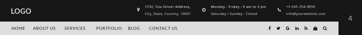 The header of a website is one of its most valuable areas. LawPro contains different header options, header types and menus. There are many different elements in header options and many ways to customize it. Below list shows the different section in the header.