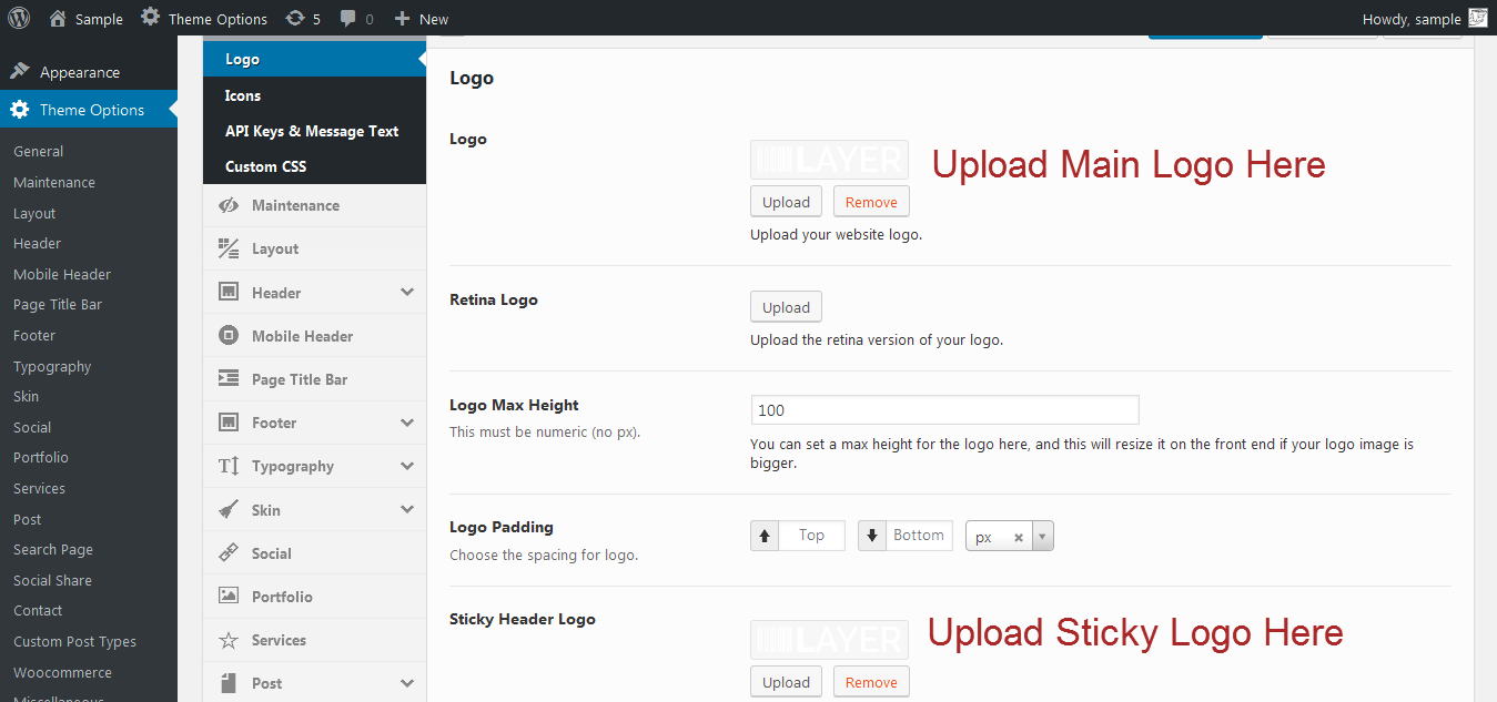 For adding logo to your site, you need to upload your logo as an image file. Once you upload a logo, it will be used in every location. LawPro allows you to upload a unique logo for 2 different areas; default logo and sticky header logo. Read the below information to upload a logo as well as information on favicons.