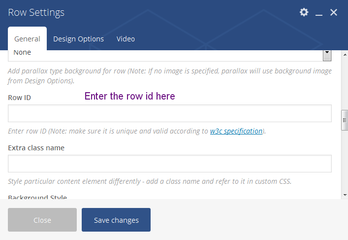 Before creating a custom menu, you need to give the Row ID for the section to be add in One Page. Read the following steps to create Row ID.