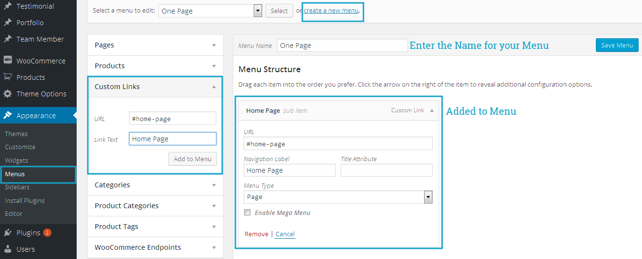 You can make a one page site with a parallax scrolling menu and allows you to put all the content on one page. The menu items will link to each sections of the page. LawPro having the options to create a One page using two ways. Please follow the steps to setup one page.