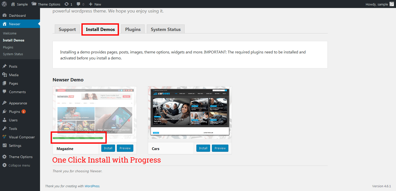 See the following steps to install the theme, plugins and demo in newsfox theme.