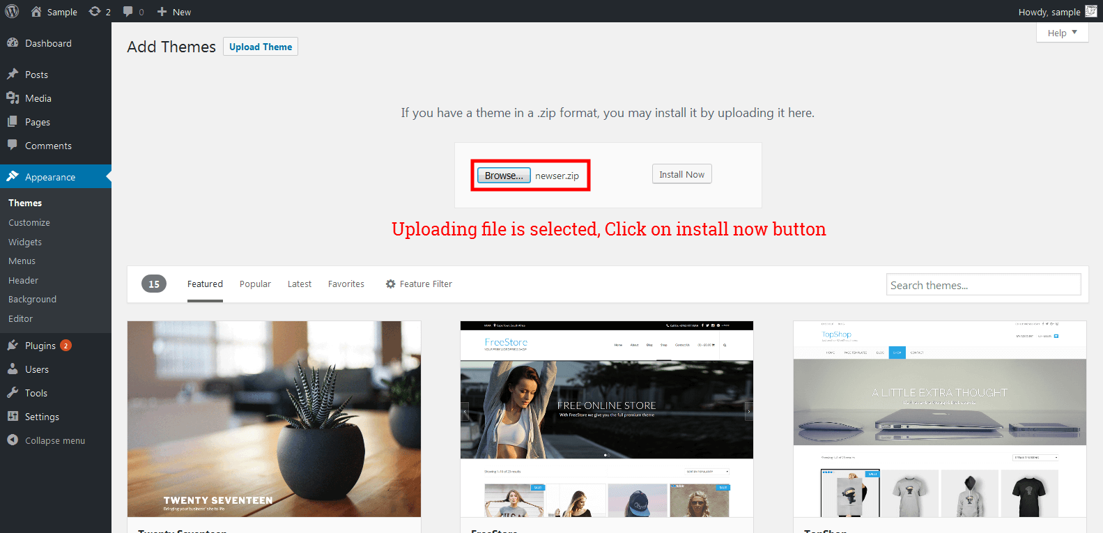 - Activate the theme after it is completely uploaded. To activate Go to Appearance > Themes and activate the installed theme.