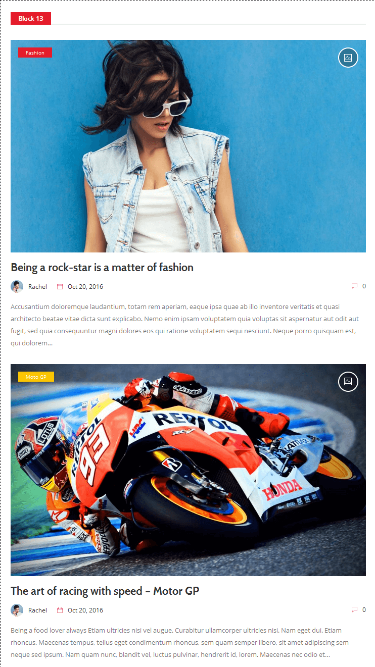 Block 13 Following shows the block 13 layouts and custom block items. Click to see other Block 13 Layouts Doc navigation← Block 12Video Playlist → Was this article helpful to you? Yes No How can we help? Name Email subject message
