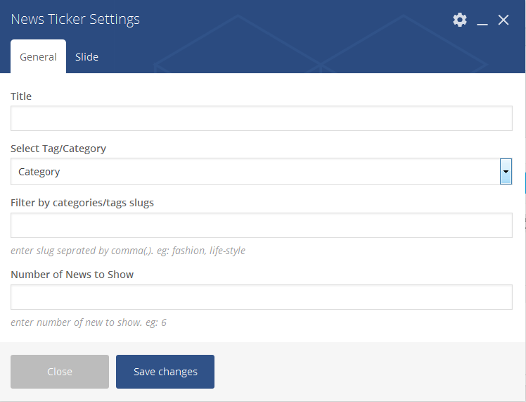 - Slide Navigation: This is to enable/disable the navigation for newsticker.