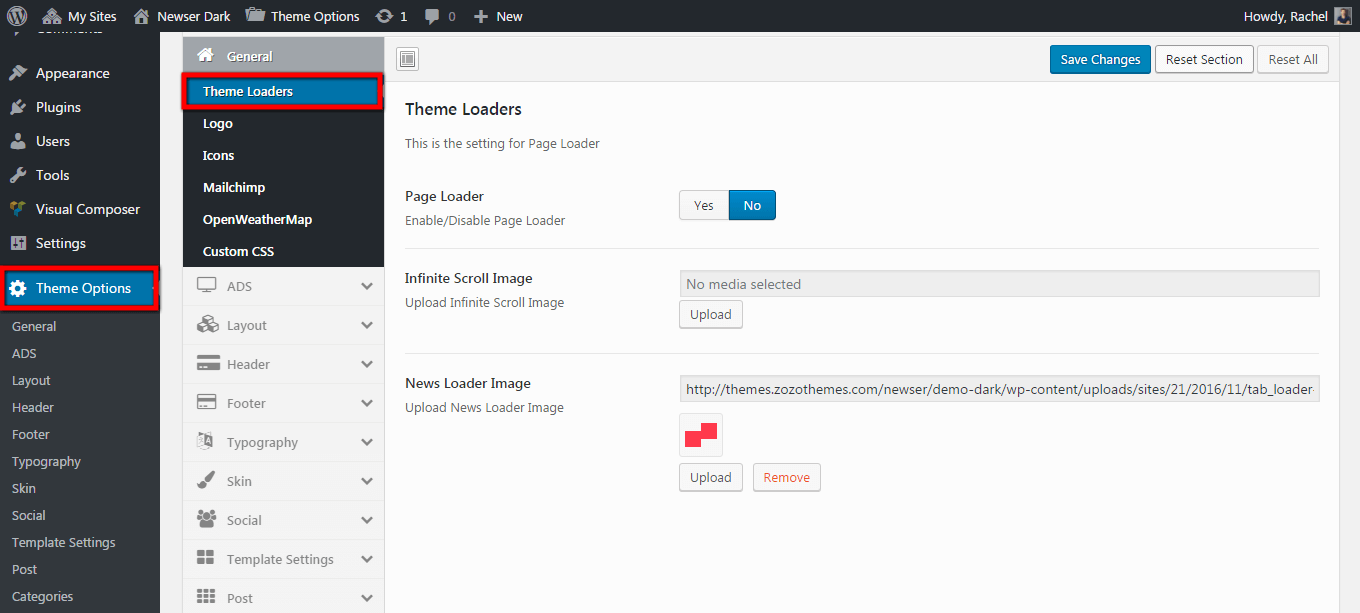 In Theme Loaders option, you can Enable/Disable the Page Loader and upload the loader images.